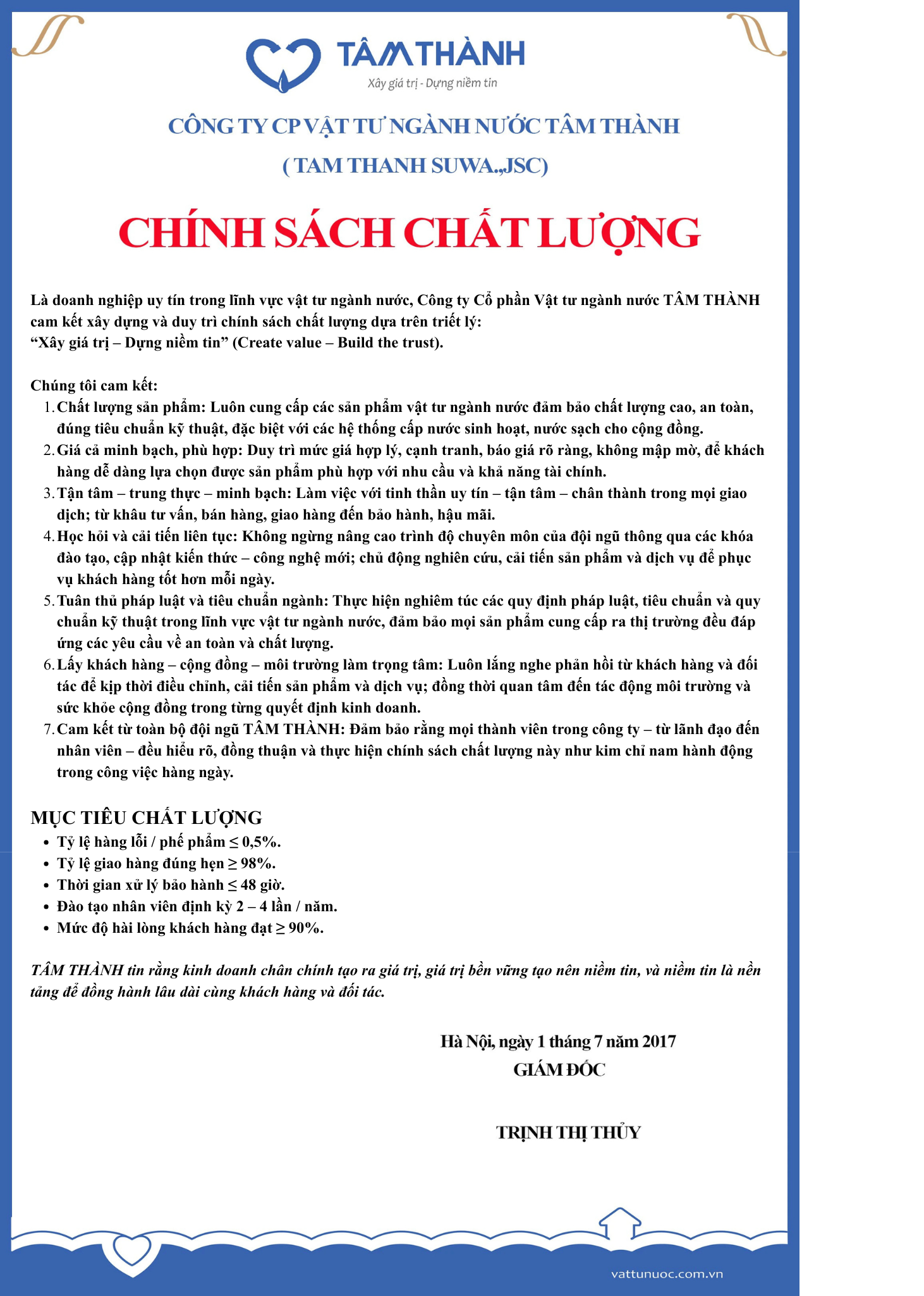 Chào mừng bạn đến với Công ty cổ phần vật tư ngành nước Tâm Thành