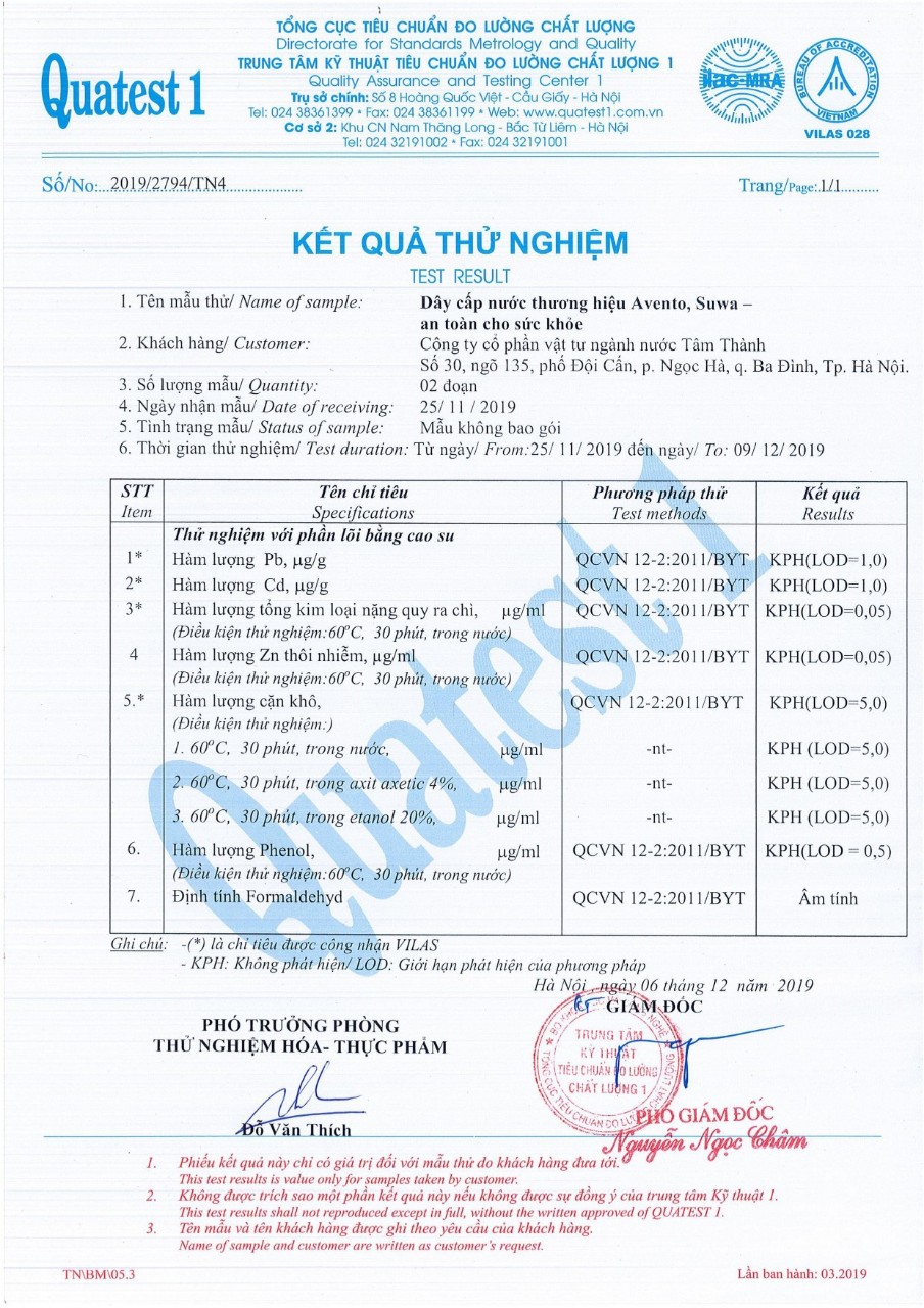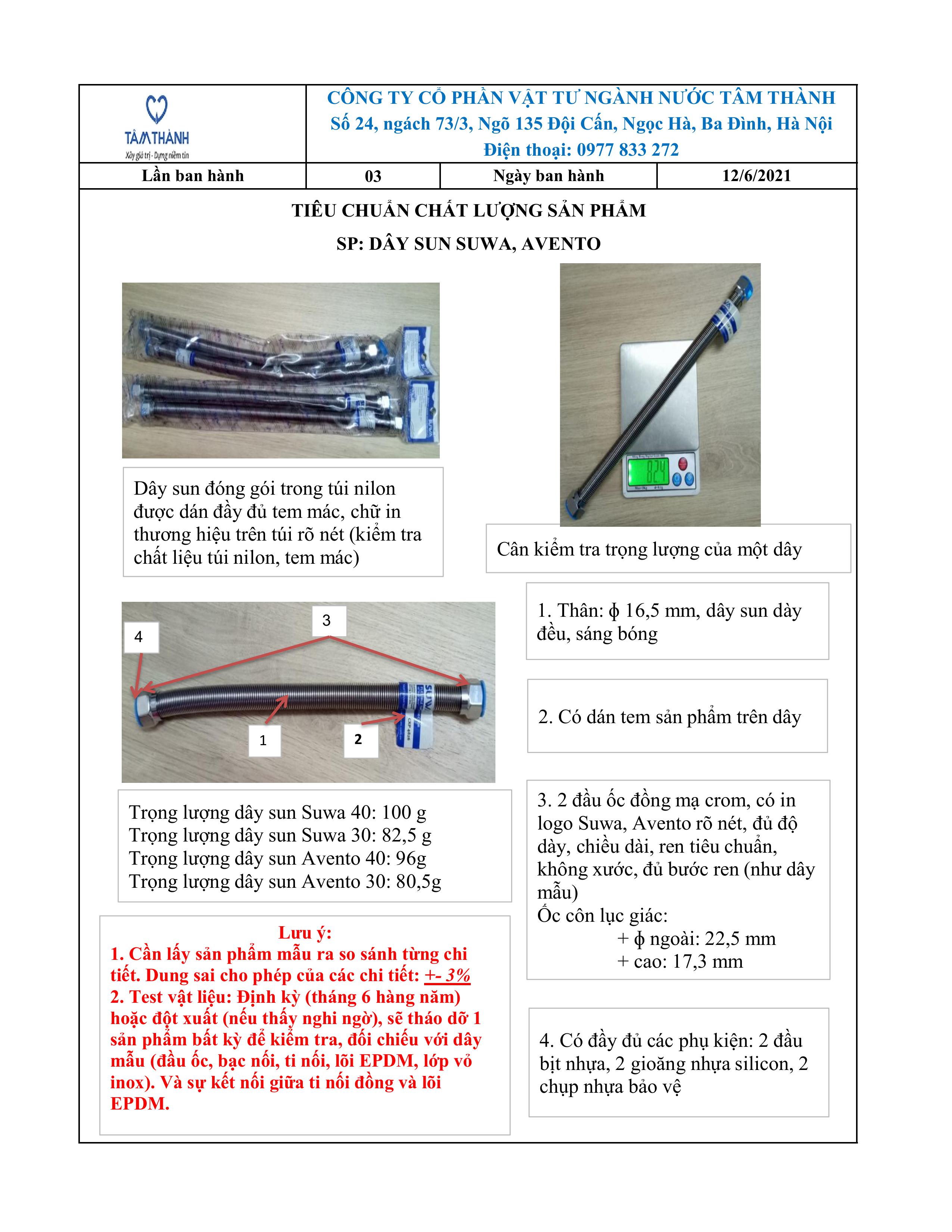 CÔNG BỐ TIÊU CHUẨN CHẤT LƯỢNG DÂY SUN SUWA, L.AVENTO