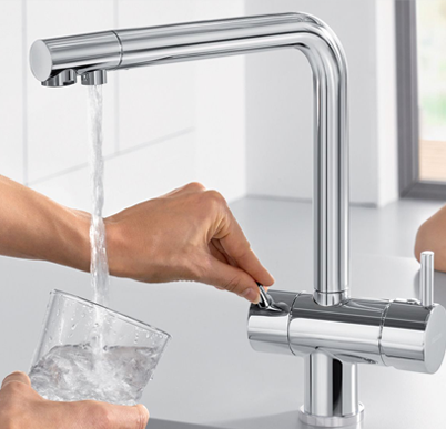 Đây là vòi rửa chén có sự tích hợp giữa vòi rửa bát ngổng cứng và vòi nước Ro (Hai đường nóng lạnh và vòi nước sạch đã qua máy lọc). Có thêm tính năng cho vòi nước lọc. Do đó, giúp bớt đi một chiếc vòi cho máy lọc nước.