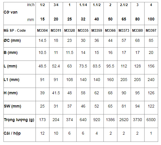 - Van bi đồng, lỗ to, nối ren.